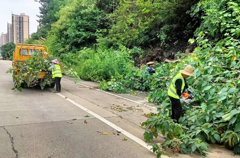 7月17日,县城管执法局市政设施站收到群众反映,受强风影响,县城竹海路山体侧一棵大树发生倾倒,存在较大安全隐患,请求处置。