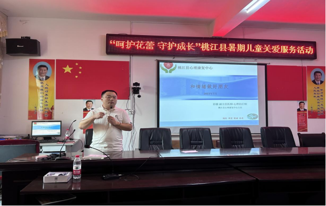 活动中,县脑科医院心理康复中心主任彭骏为孩子们上了一堂题为《和情绪做好朋友》的辅导课程,通过设计问题、视频学习、深情朗诵等一系列互动活动,向孩子们讲解了情绪的概念、种类以及特点,引导儿童健康成长,积极面对自己的情绪问题。在最后的问答环节,孩子们积极分享了自己对情绪的看法以及如何保持良好情绪的方法,主题课堂在欢快的笑声中圆满结束。