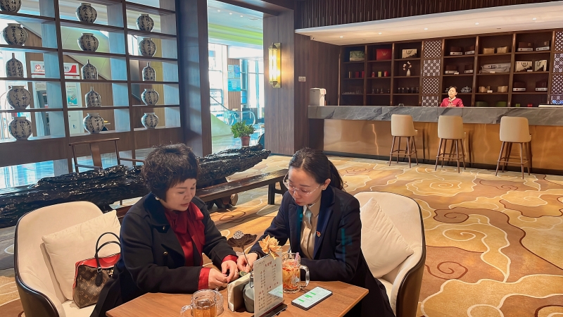 桃江农商工作人员为喜龙餐饮定制贷款方案 唐诗惠 摄