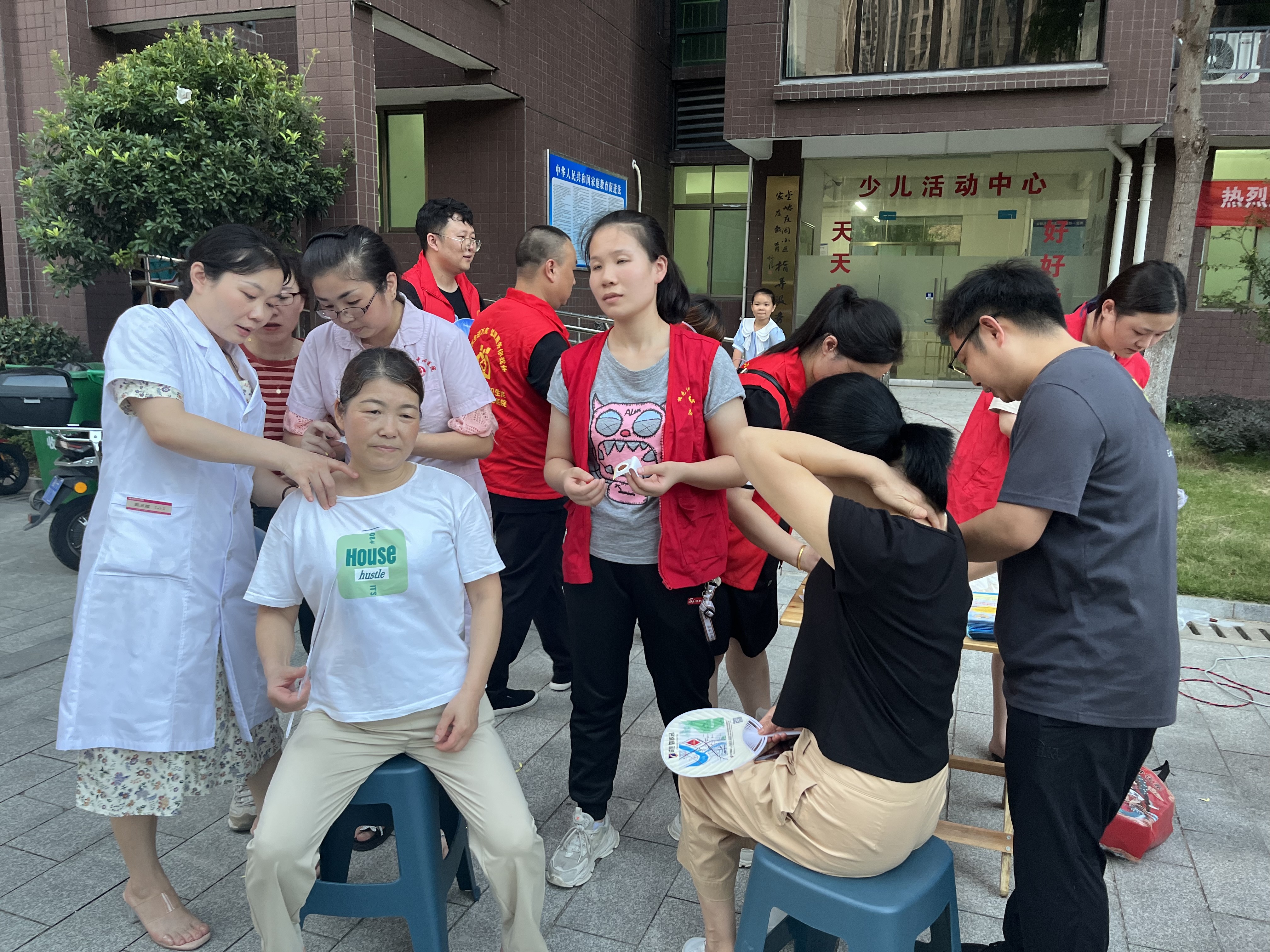 活动现场,前来参加义诊的居民络绎不绝,医护人员耐心地为大家测量血压、血糖,对居民提出的健康问题一一作出解答,并就高血压、糖尿病等中老年人常见病、多发病进行预防知识宣教;向居民讲解三伏贴的治病原理,建议大家根据不同的体质、症状,选择不同的穴位进行贴敷。