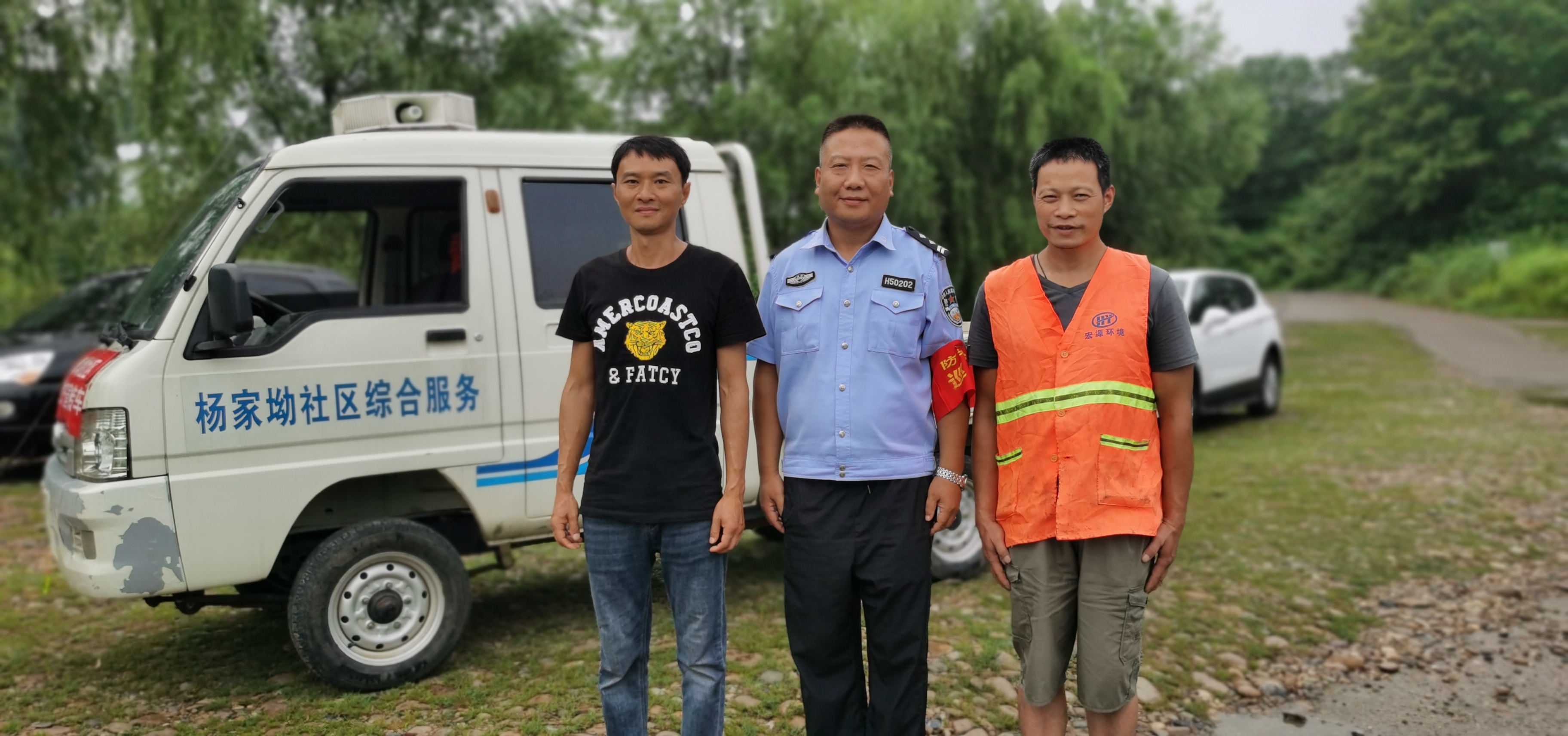 图为文科(左)辅警刘胜国(中)和保洁员刘龙庆(右)合影。胡卫红 摄