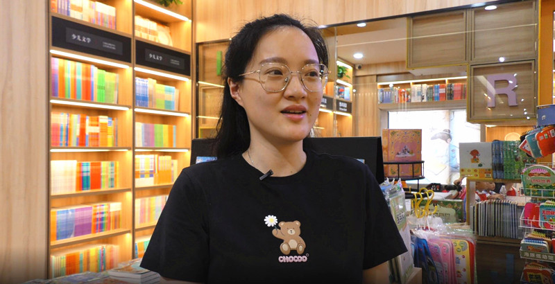 县新华书店店长张晓倩接受记者采访 胡依诺 摄