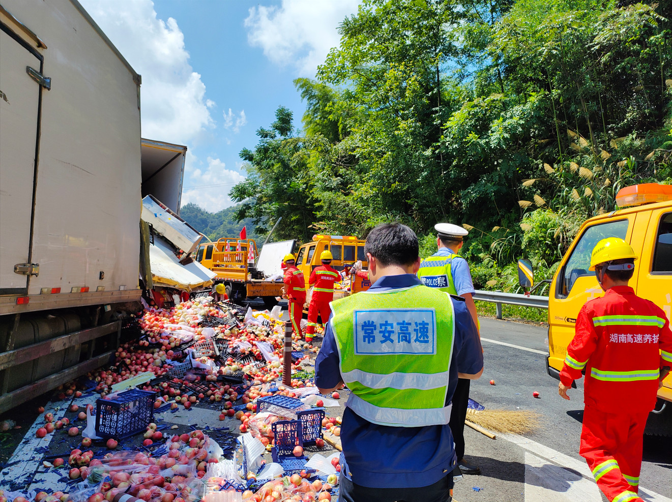 交通事故现场撒落一地的水果 夏艳 摄