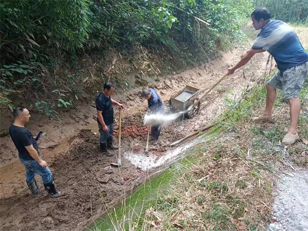8月4日,桃花江灌区管理局组织各管理所职工利用轮灌停水间隙,对隐患渠段进行抢修和清障。
