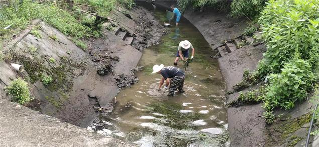 干职工对渠面进行清障 刘卓夫 摄