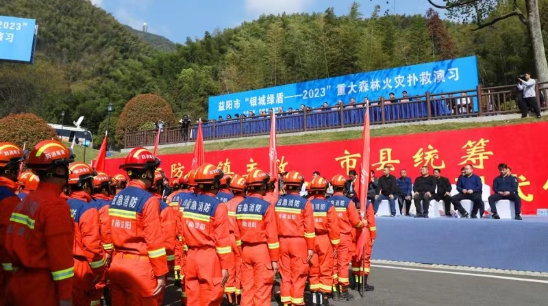 2023年4月,桃江县承办益阳市“银城绿盾”重大森林火灾扑救演习,从专业队伍、社会救援力量集结,到各类救援物资的调集,再到现场调度处置,充分展现了桃江深化应急管理体制改革试点工作的成就,受到与会省、市领导的高度认可。