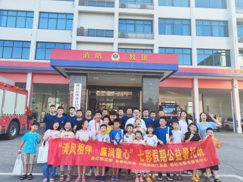 近日,由桃江县纪委监委、桃江县委组织部、共青团桃江县委和桃江县机关事务服务中心联合主办的“清风相伴·廉润童心”七彩假期公益暑托班走进桃江县消防救援大队开展少年儿童消防实践活动。