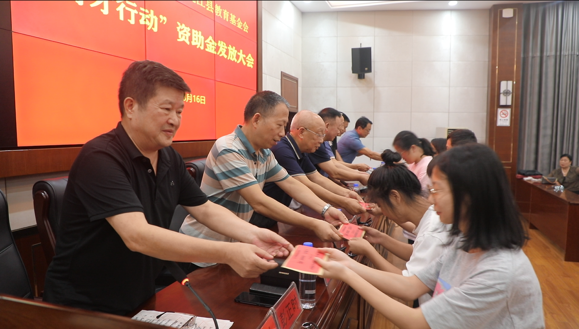 据悉,此次“育才行动”总计98.7万元的资助款将分两个批次分发。当天仪式中,第一批资助款39.7万元在现场发放给120名中小学和大学新生;第二批资助款59万元将在秋季开学时通过各学校发放到348名学生手中,其中,由县教育基金发放资助款35万元,资助困难家庭中小学生200人,由曾景祥教授扶贫助学基金发放资助款24万元,资助困难家庭中小学生148人。