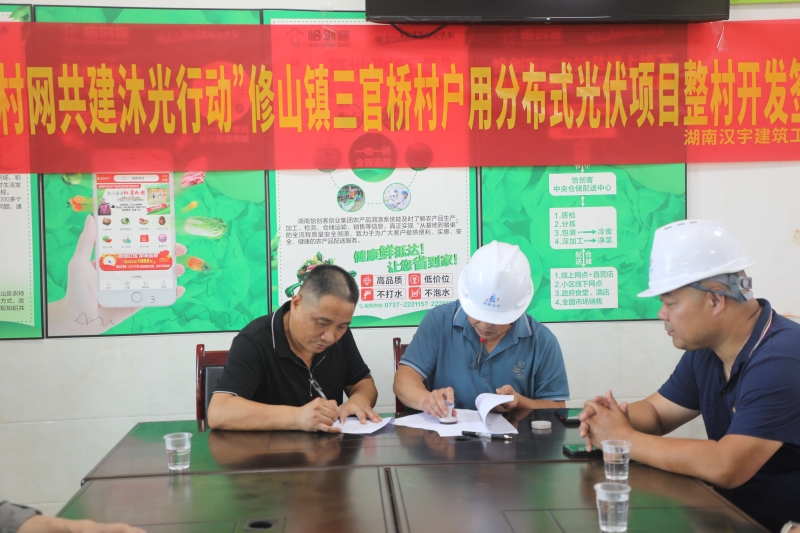 近日,桃江汉宇天合新能源公司承建的“村网共建 沐光行动”分布光伏项目整村开发签约仪式分别在修山镇三官桥村和修山社区正式签约。