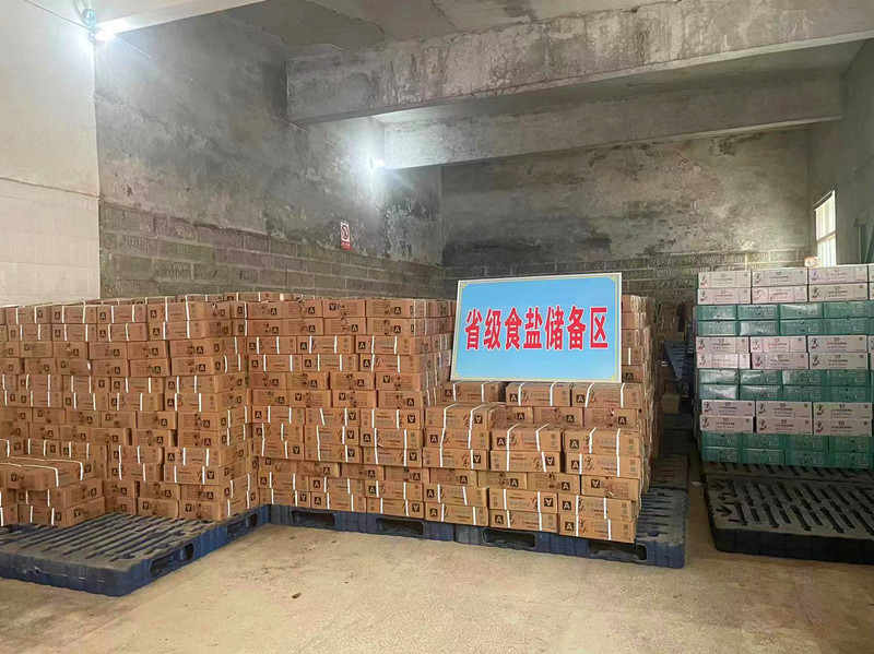雪天盐业集团股份有限公司湘北分公司桃江事业部仓库储备的食用盐 胡依诺 摄