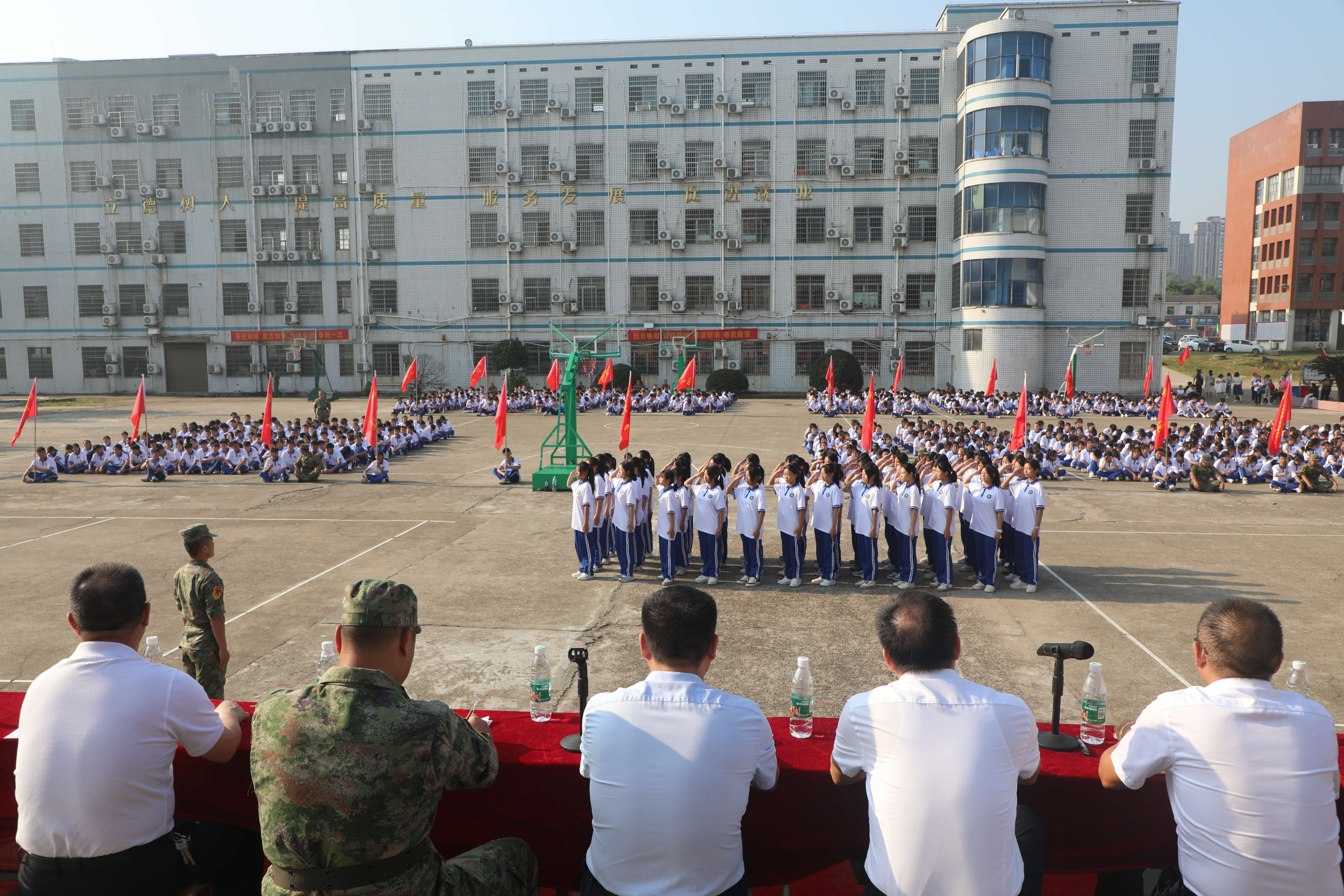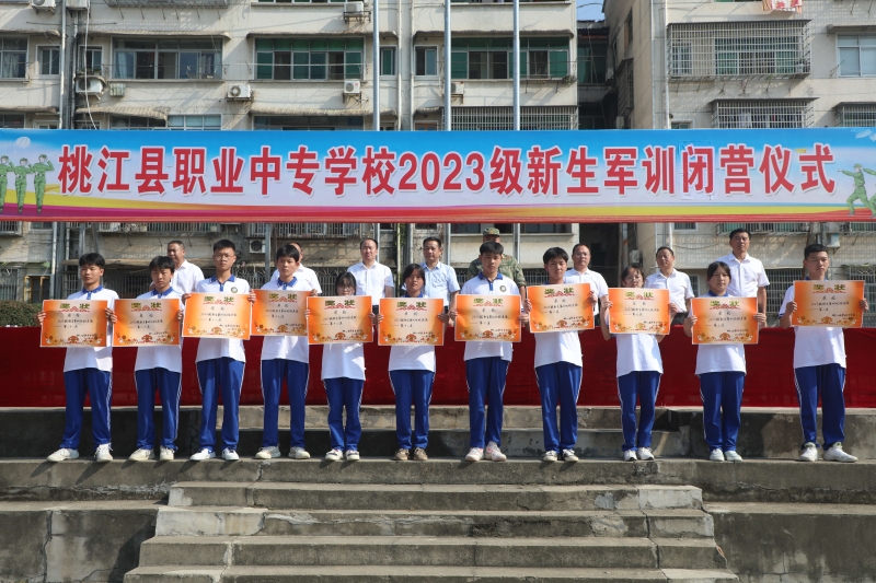 8月31日上午,县职业中专举行新生军训汇报表演暨闭营仪式,全校1100名高一新生参加。