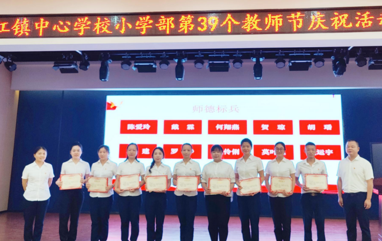 宣誓结束后,学校对陈爱玲等20名“师德标兵”和上学期全县六年级毕业班质量检测的“优秀教师”进行了表彰。