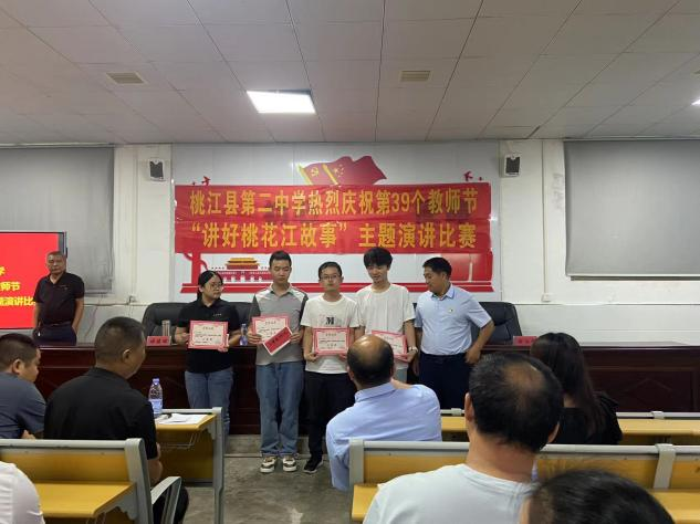 9月10日,在第39个教师节来临之际,桃江二中组织教职工举行“讲好桃花江故事”演讲比赛。