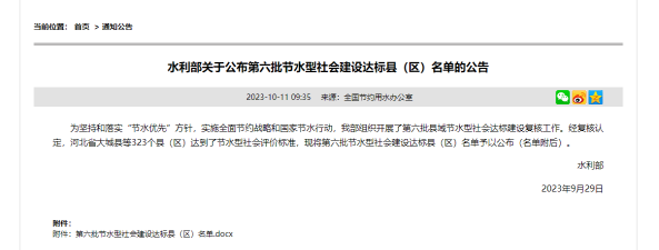近日,水利部公布第六批节水型社会建设达标县(区)名单,桃江县位列其中。