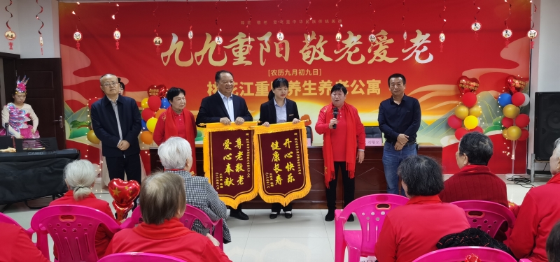 活动现场,两位老人将两面分别写着“尊老敬老 爱心奉献”“开心快乐 健康长寿”的锦旗送给公寓负责人,衷心感谢这里的工作人员对老人们家人般的关心与照顾,让老人们老有所依、老有所乐。