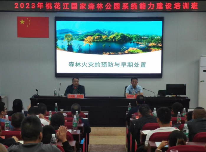 10月25日,2023年桃花江国家森林公园系统能力建设培训班开班,桃花江国家森林公园管理处森林防灭火分管负责人、业务骨干、防火专业队代表共计80余人参加。