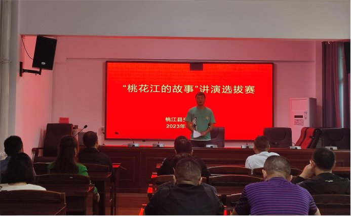 比赛中,参赛选手紧扣主题,激情高昂地讲述着平凡而又动人的桃花江故事,博得了评委们和现场观众的阵阵掌声。评委从语言表达、形象气质、现场效果等方面进行综合评分,最终推选两名优秀讲演者参加县里统一组织的初赛。