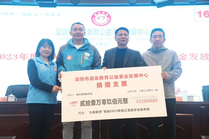 11月25日,游友公益“火炬助学”2023年度益阳桃江站助学金发放仪式在县教育局举行。