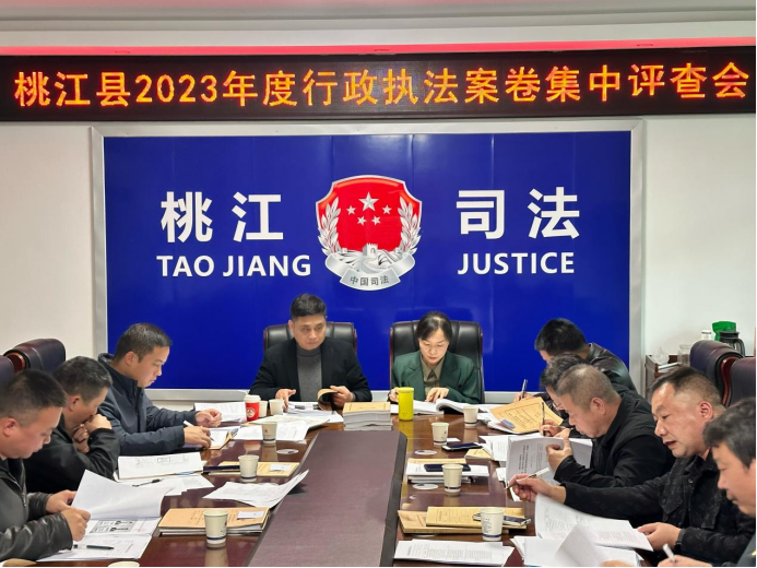 2023年度桃江县行政执法案卷评查工作组由县司法局、县市场监督管理局、县农业农村局等行政执法单位及部分乡镇行政执法及执法监督分管负责人或具体负责人组成。评查现场,评查工作组从36个行政执法单位抽调涉企行政执法案卷48份,对照评查标准逐项核查,逐项打分,对评查过程中遇到的存疑事项或重大疑难案件,由评查工作组组长组织进行集中研究讨论,形成统一意见。