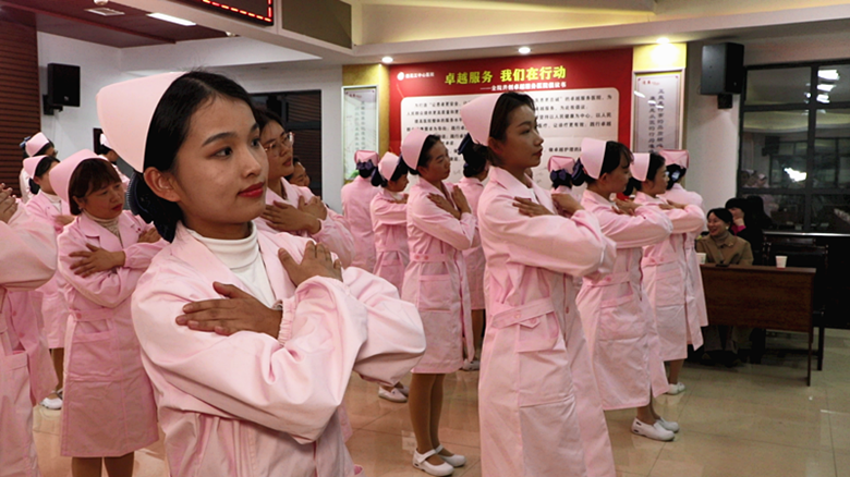 会上,素质礼仪培训学员代表作典型发言,一批“卓越服务”优秀医护人员受到表彰。在全院干职工的热烈掌声中,素质礼仪培训班全体学员进行了“礼”的手语舞汇报表演,在柔美的音乐声中,学员们将工作中规范的礼仪动作融入到舞蹈中,彰显出“厚德博学、仁心仁术”的良好医风。