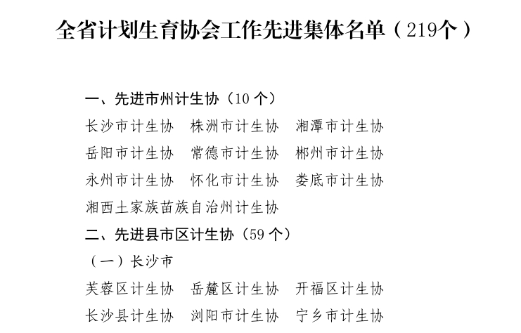 日前,从省计划生育协会第八次会员代表大会传来喜讯,桃江县计生协被授予“全省计划生育协会工作先进集体”荣誉称号。