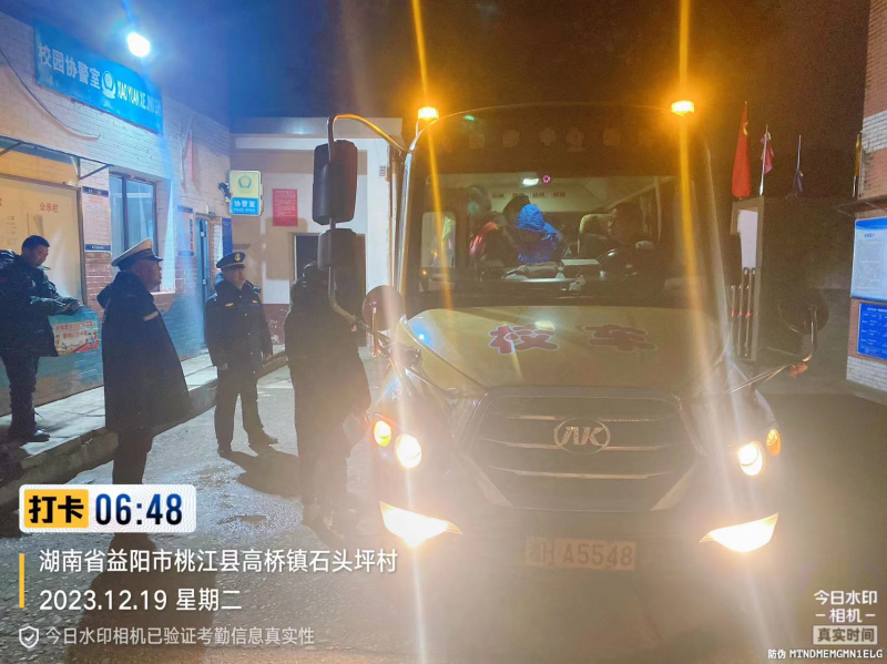 “石牛江路面排查无隐患,无结冰,校车可以安全通行!”12月19日凌晨5点,石牛江镇校车办工作人员向县校车办报告。