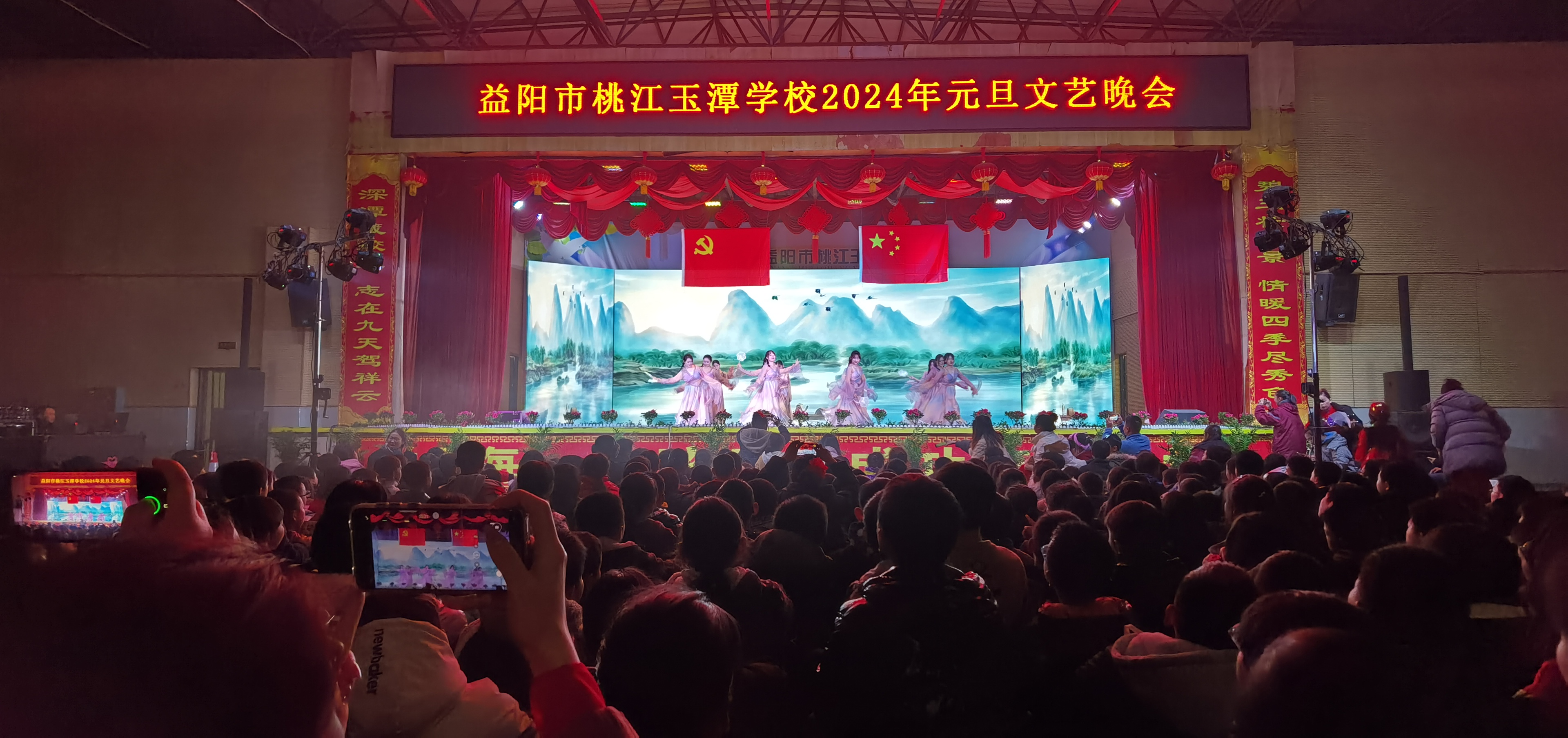 12月29日晚上,桃江玉潭学校举行2024年元旦晚会,来自该校小学部、初中部和高中部的近3000名师生欢聚一堂,载歌载舞庆祝元旦节的到来。