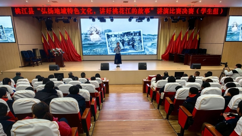 1月4日上午,桃江县“弘扬地域特色文化,讲好桃花江的故事”讲演比赛学生组决赛在县教师发展中心举行,来自全县各乡镇中心学校、县属学校、民办学校的26名选手参赛。