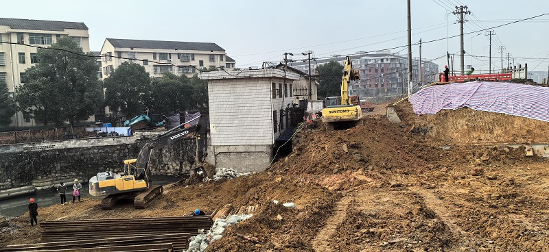 1月5日上午8点半,资水尾闾南岸涝区治理二期项目向荣泵站新建施工现场机器轰鸣。施工方介绍,目前支护工程已完成,正在进行基坑开挖,预计7天内能完成,完成基坑的钢板桩围堰之后,再形成闭合的基坑干作业面。
