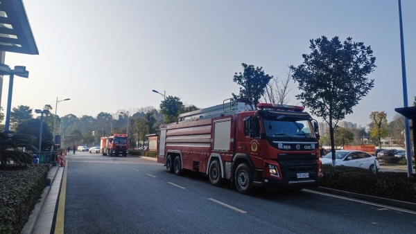 此次演练模拟机关大楼10楼1007室发生火情、2名人员被困。值班人员发现报警信号后,立即拨打119报警。参演人员按照大楼应急预案,有序开展初期火灾自救、广播播报火情、现场人员撤离、区域封锁警戒等一系列应急处置措施。随后,4辆消防救援车鸣笛火速到达,迅速展开救援,整个撤离疏散过程迅速紧凑。10分钟后,火势彻底扑灭,险情排除,现场恢复正常。演练达到预期效果。