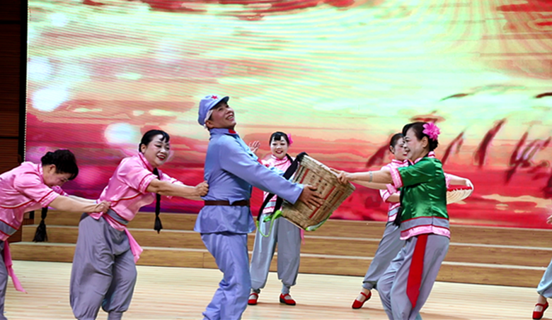 舞蹈《那片田埂那片情》以优美的舞蹈动作展示了农业丰收的喜悦之情。由文化馆天问艺培中心带来的葫芦丝演奏配合台上的美术、剪纸现场展示极具观赏价值,其惟妙惟肖的绘画作品体现出中华美术的博大精深,市级非遗桃花江剪纸《二龙戏珠》更是展现的桃花江剪纸的独特魅力;T台秀《华夏霓裳》、戏曲《梨花颂》、舞蹈《书简》,节目五彩缤纷,集中展现了一年来我县群众文艺活动取得的累累硕果。