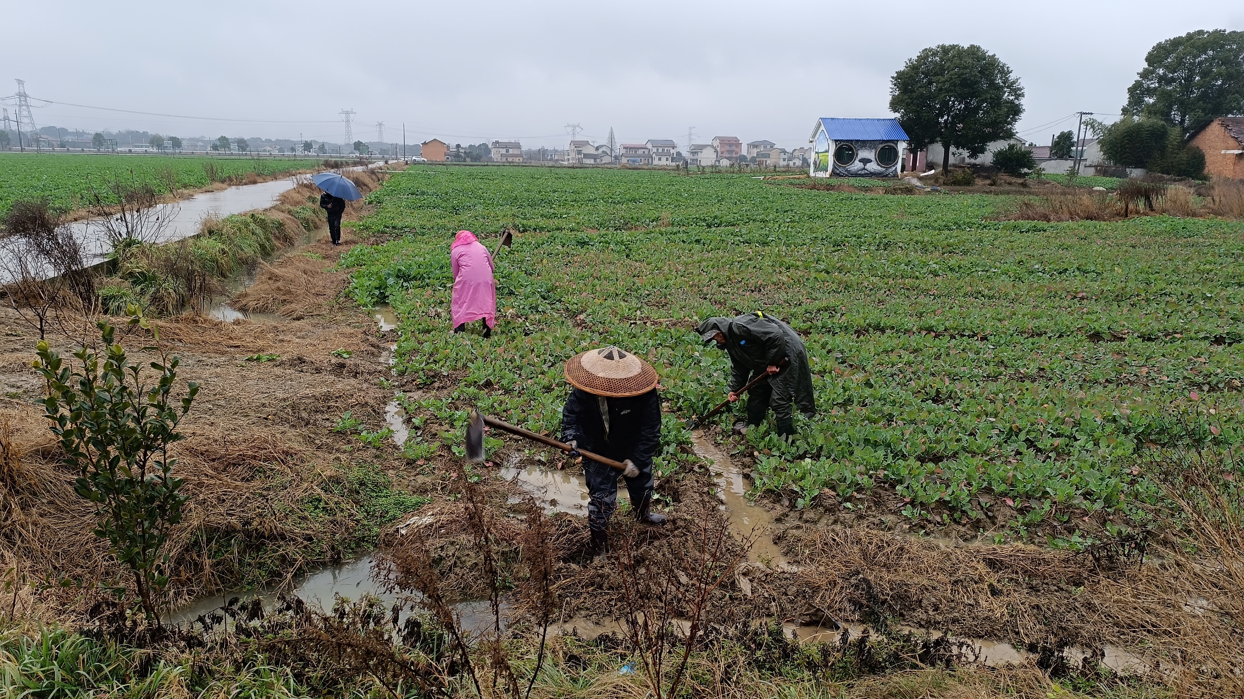 石牛江镇油菜万亩示范片正在开沟沥水防止渍水结冰危害 袁静 摄