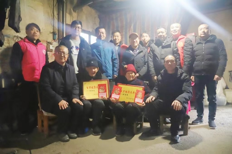 1月19日,县民政局联合县老科协前往高桥镇赵家山村,上门看望百岁夫妇杨普生、张爱香老人,为他们送去“百岁健康长寿之星”与“百岁健康伉俪”牌匾。