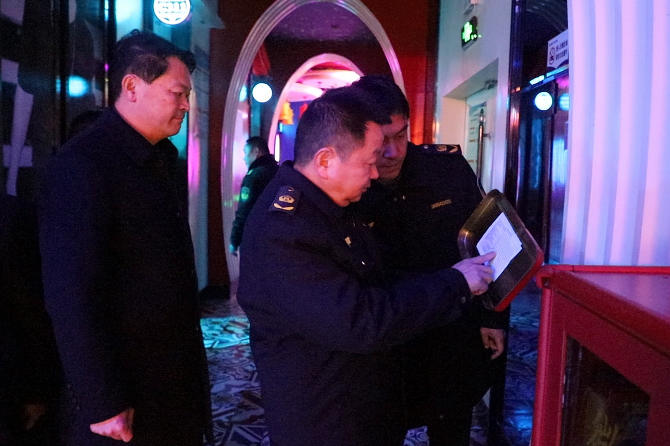 1月30日晚上,县文旅广体局组织执法人员对县城部分人员密集场所,进行岁末年初安全生产检查,强化消防安全整治。