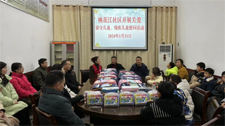 1月31日上午,县财政局志愿者服务队前往桃花江镇桃花江社区开展“春节慰问暖童心”志愿服务活动。在社区会议室,志愿者为桃花江社区的20名留守儿童与残疾儿童送上书包、笔记本、牛奶等爱心物资和节日的祝福,关切询问他们的学习生活情况和家庭状况,鼓励孩子们要克服困难,勤奋学习、自立自强,用行动回报社会。