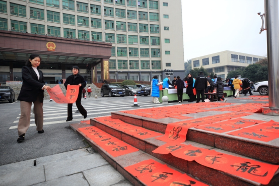 节前的文化市场也格外活跃。家长们带领孩子们到书店购买心仪的书籍。县机关事务服务中心会同县文联进机关、进社区现场写春联,送廉送福送祝愿。