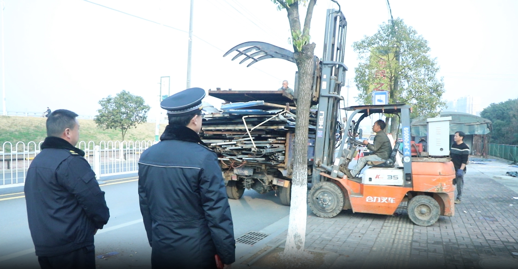执法人员管控城区违章搭建 陈明 摄