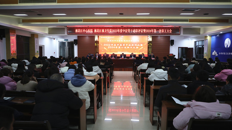 2月2日晚上,桃花江中心医院召开2023年度中层骨干述职评议大会,该院全体干职工参加。