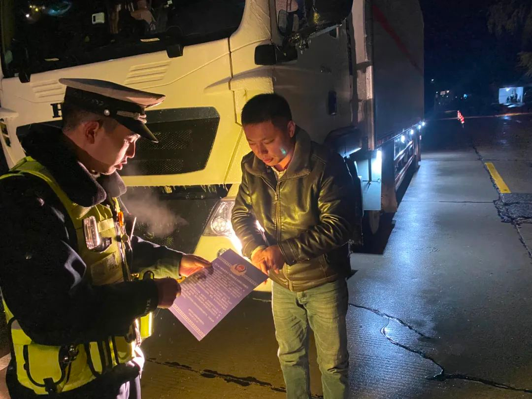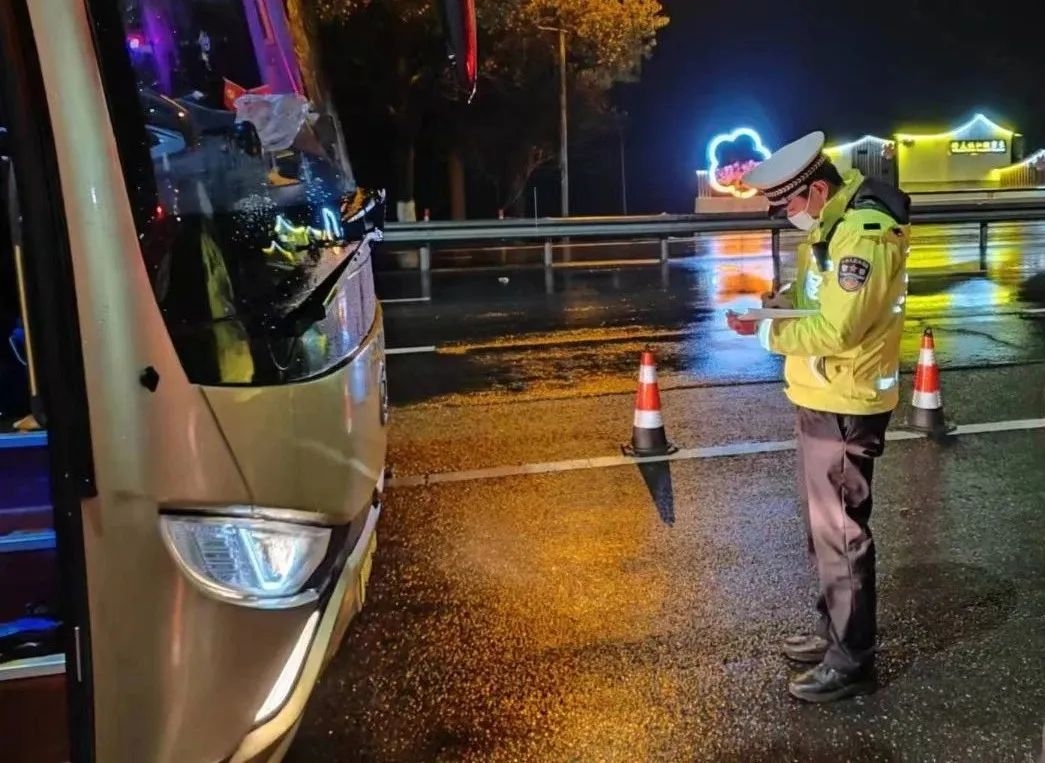 2月2日晚18时开始至2月3日上午8时,桃江交警共劝停客运车辆6台、危运车辆8台,牵引护送2台大巴车安全过境。
