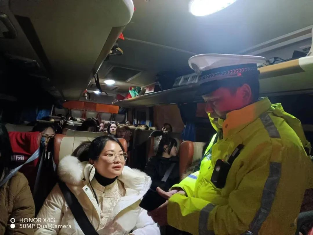 在国道536县紫金湾春运检查站,桃江交警一中队备齐了方便面、晕车药、防滑链等物品,及时提供给需要的群众,第一时间劝停深夜行驶的客危车辆,耐心向司乘人员做好交通安全提示和相关解释工作。扎实的工作和暖心的举措赢得了人民群众的肯定和对公安交警工作的支持。