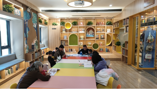 书店儿童绘本馆内,家长带孩子们一起亲子阅读 习娇 摄