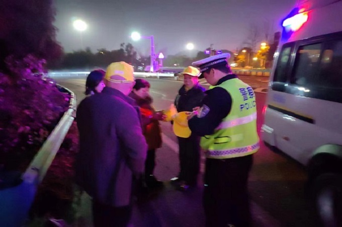 夜间,造成致命威胁的“首凶”就是不被看见,县公安局交通警察大队特意为喜爱散步的群众准备了一批“小黄帽”。期间,共发放“小黄帽”1000顶,反光手环1000条,劝导群众2400余人次。同时,充分发挥各乡镇“两站两员”、派出所等力量,在乡道加强路面巡逻和隐患排查,全力防范事故发生,并面对面对劝导夜间散步的群众。