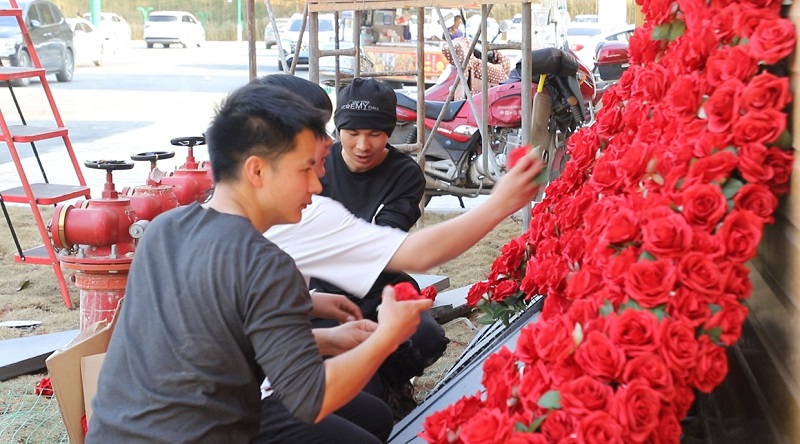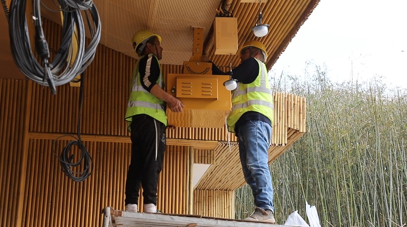 工人正在为“竹海幻境”安装设备 李丹 摄