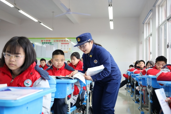 课堂上,消防宣传员结合近期发生的一些火灾案例,针对学生普遍存在的消防安全意识薄弱、自救逃生技能掌握不足的特点,采取课堂现场宣讲、播放消防宣传片、讲解消防安全课件、发放消防知识手册等方式,介绍了家庭、学校常见的火灾类型,并讲解了日常防溺水知识、防火常识等,有效将消防安全融入校园生活当中。