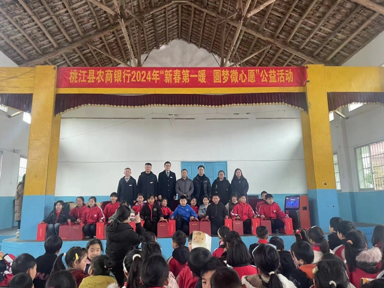 3月4日上午,桃江农商银行来到鲊埠回族乡的瓦渣湾小学开展2024年“新春第一暖 圆梦微心愿”公益活动