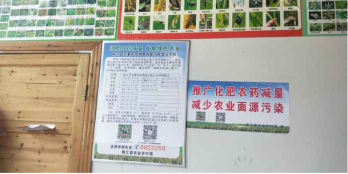 工作人员在各门店安装《桃江县主要农作物肥料配方信息公示栏》,该信息是依据《湖南省主要农作物测土配方专用肥配方》,结合桃江县历年来测土配方施肥基础数据,通过科学测算形成的主要农作物肥料配方建议。《桃江县主要农作物肥料配方信息公示栏》主要用于引导肥料生产经营企业按“方”生产,指导农户按“方”购肥,科学施肥,提高作物产量,保证粮食生产安全,降低农业生产成本,增加农民收入,节约资源,保证农业可持续发展,减少污染,保护农业生态环境,减少病虫害发生。