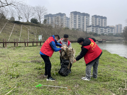 志愿者对河岸的垃圾进行清理 龙紫怡 摄