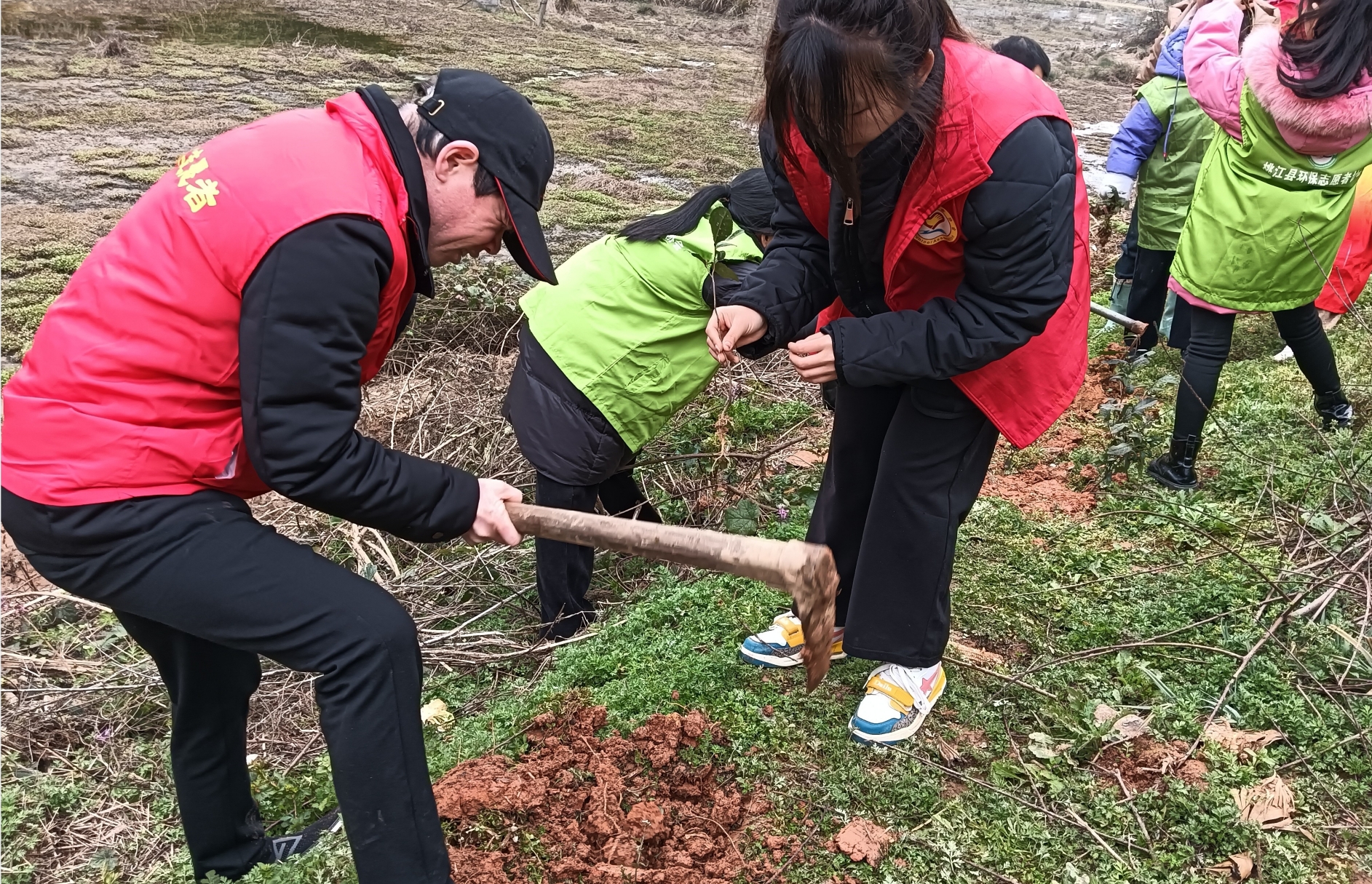 3月9日上午,桃江环保志愿者协会、资水志愿者协会与郭家洲环保分会在三堂街宇华农庄开展植树造林活动。山坡上,一群穿着红绿马甲的大、小志愿者,挖坑、扶苗、培土、夯实、浇水,分工合作,配合默契。小志愿者们专注听取大人的讲解后,按植树流程认真栽培,还不忘悄悄地叮咛小树苗,希望它们快快长大。