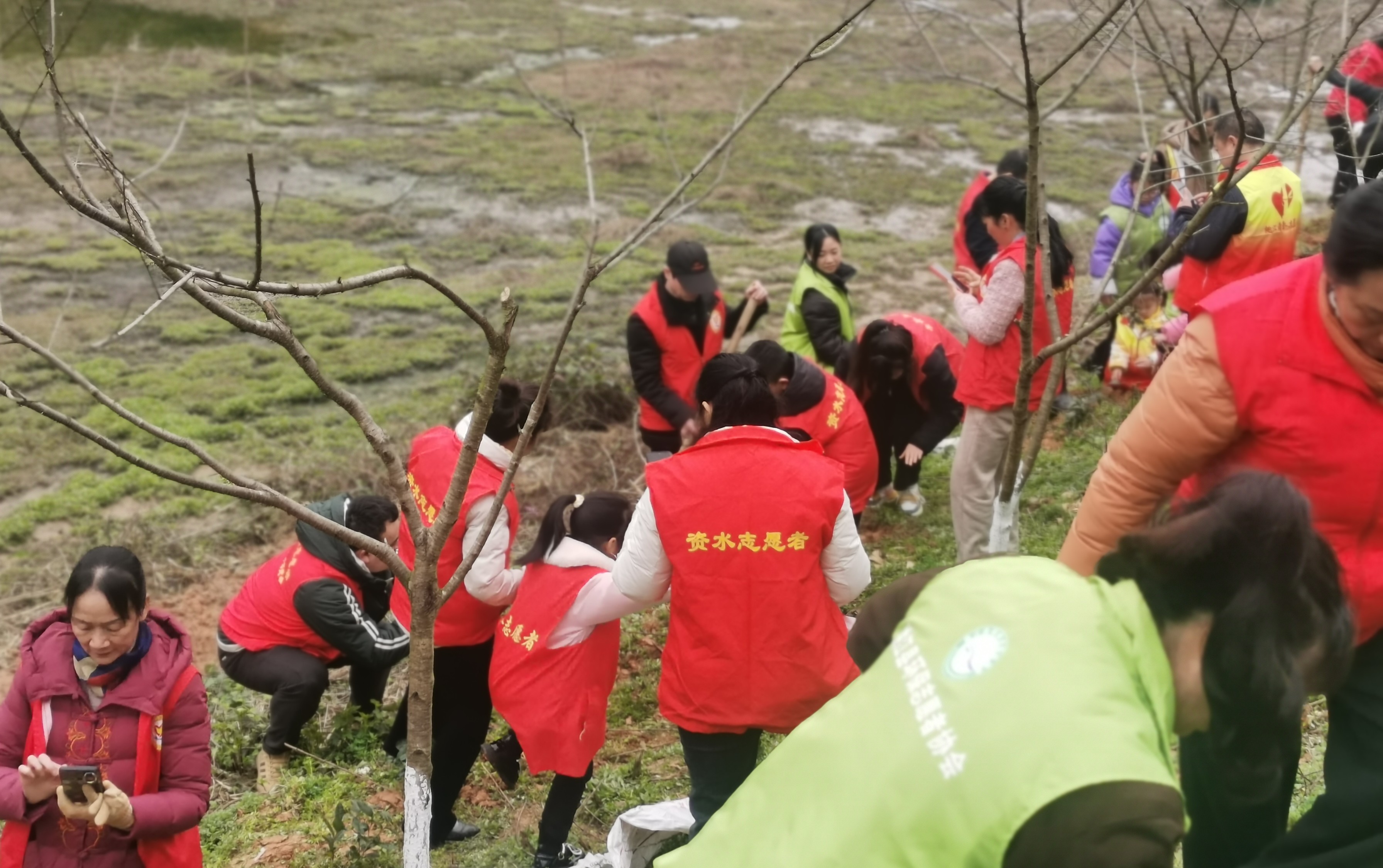 经过一上午的劳动,30多位志愿者栽种了近300棵小树苗,同时给去年种植的十多亩茶园扯掉枯藤除去杂草,期待来年春天,山坡上呈现旺盛的生命绿意。