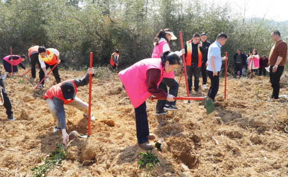 沾溪镇组织青年志愿者前往洋泉湾廻龙山开展以“科学开展造林绿化,建设人与自然和谐共生美丽沾溪”为主题的植树活动,共种植各类绿化树木100余棵。(通讯员:刘艳莹 邱云贵)